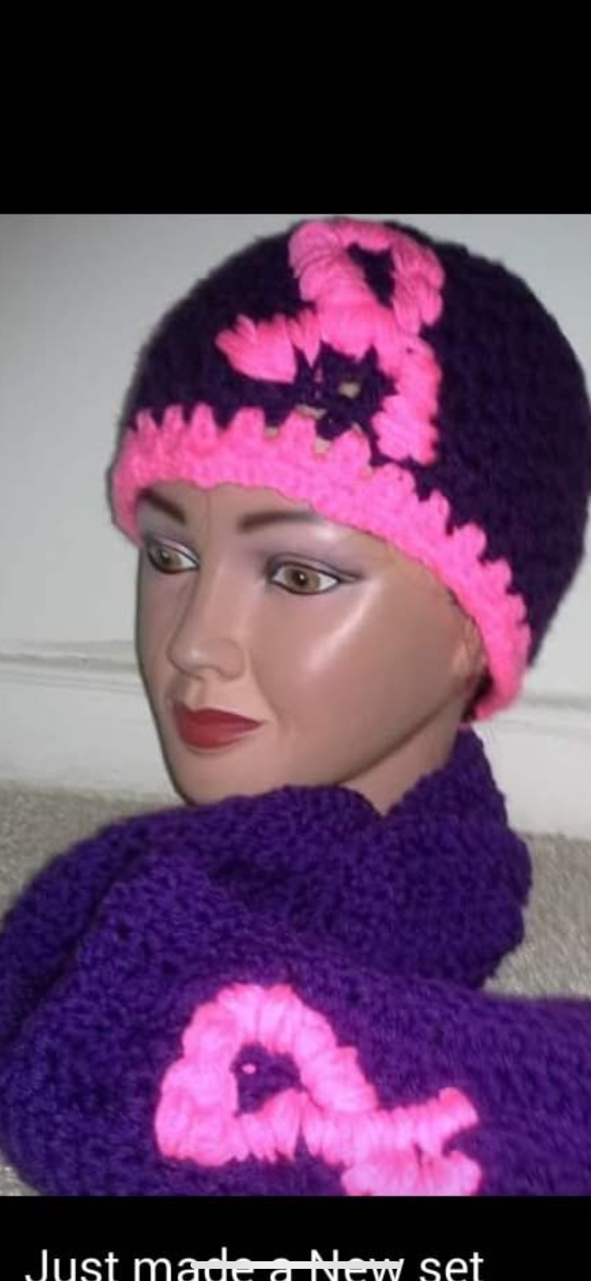 Breast Cancer Awareness 2 Piece Crochet Hat and Scarf Set