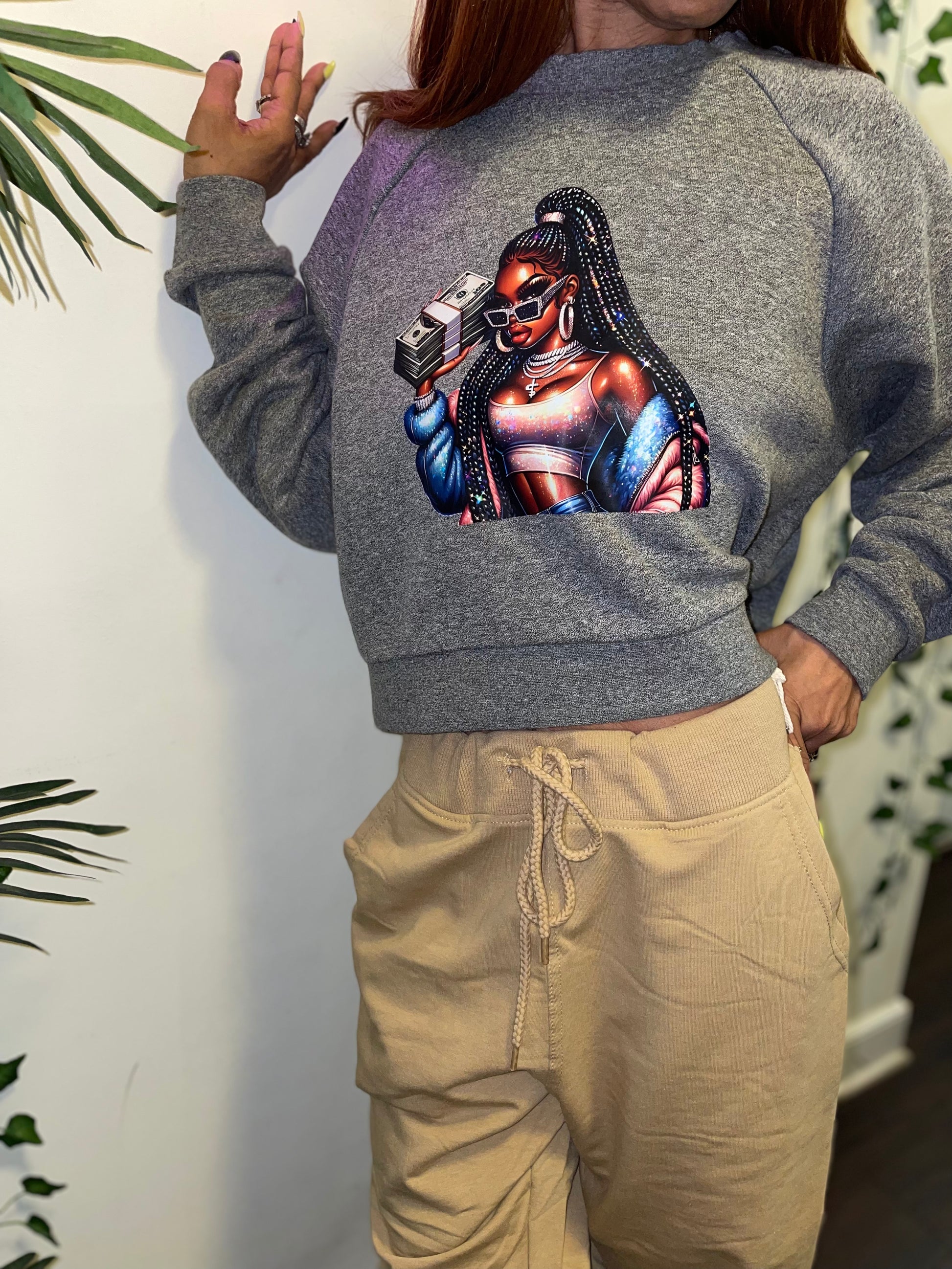 Flaunt your style in our bold Boss Babe graphic cropped sweatshirt and oversized joggers set.