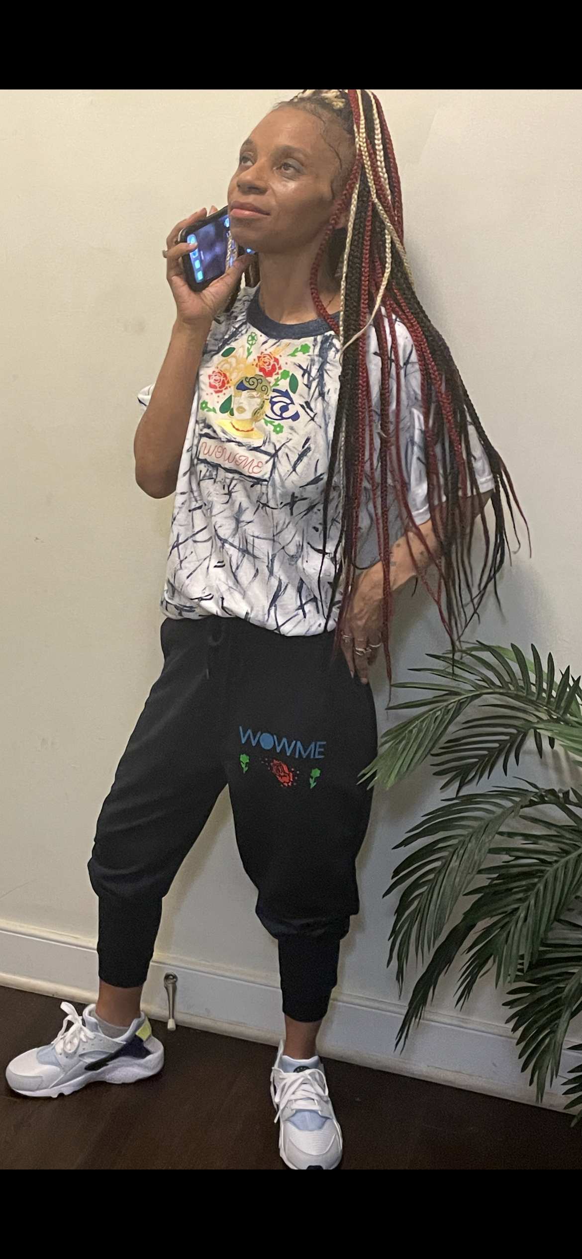 Short sleeve shirt with image on it with navy Blue sweat pants for all sizes women girls from extra small to 3X sizes and different colors with short sleeve shirt or long sleeve shirt, plain or with a design image on it on sale. Plane set would be $40 show and pants with image design would be $50 shirt and pants different colors on sale now half off. These are the prices now.